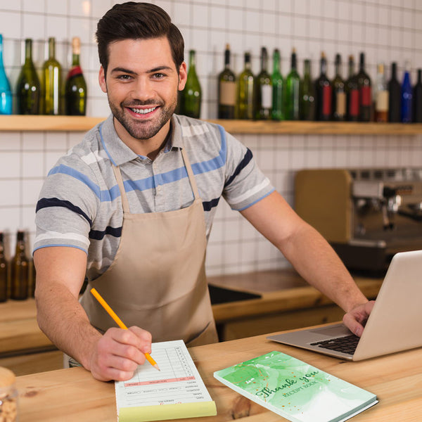 [Watercolor Style Design] The colorful watercolor style cover design is instantly appealing to your guests, and the appropriate size, 6.77x3.62 inches, three books in total, white yellow 50 sets 100 sheets per book; is great for conducting management of your financial records with customers in a practical and beautiful way.