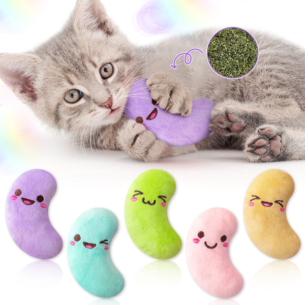 MALLMALL6 5Pcs Easter Jelly Beans Candy Catnip Toys Gift for Indoor Cat, Colorful Sugar Catmint Interactive Toy, Soft Cute Plush Pet Presents Supplies Gift for Cat Lover, Kitten Teething Chew Kick Set