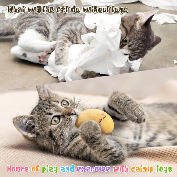 [Suitable Size] This size is suitable for cats to chew, each catnip toy measures about 3.8*2.2 inches, which is the right size for your cat to hit, chase, kick and roll around while you are busy, releasing their predatory nature and getting rid of boredom and loneliness.