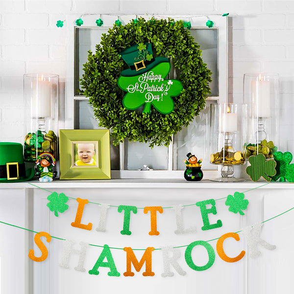 MALLMALL6 LITTLE SHAMROCK Banner for St. Patrick's Day Baby Shower Material:green, golden glittery paperboard