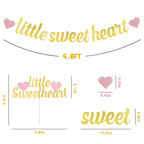 Pink and golden glittery banner and cake topper which will be an excellent photo booth, creating a party atmosphere and shining on your precious photos.