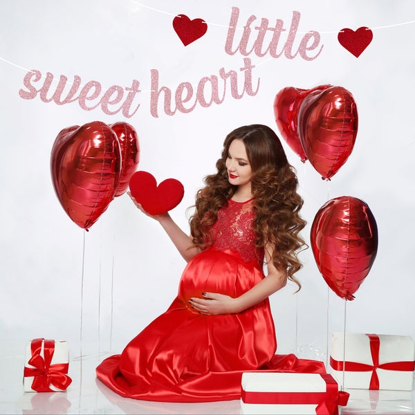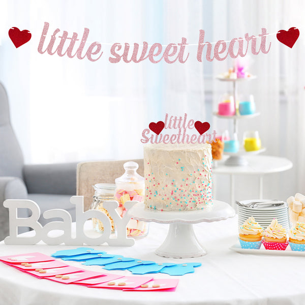 [Little Sweetheart Party Decoration Set] Our "Little Sweetheart" banner and cake topper are a good match for Valentine's Day baby shower. Our signs are warmer and sweet. Red heart shape, pink glittery banner and cake topper which will be an excellent photo booth, creating a party atmosphere and shining on your precious photos.